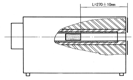 爐體中心為加熱管,加熱管內(nèi)置一“靶”,組成圓錐—圓柱復(fù)合腔體?!鞍小痹诩訜峁苤械奈恢脮?huì)影響黑體腔的黑度系數(shù),其位置由“靶”的端面至黑面板的距離L來保證。L=270±10mm。