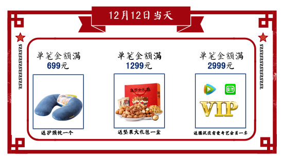 第二重:累計(jì)滿送好禮,多滿多送,活動(dòng)時(shí)間:12月12日至12月31日。