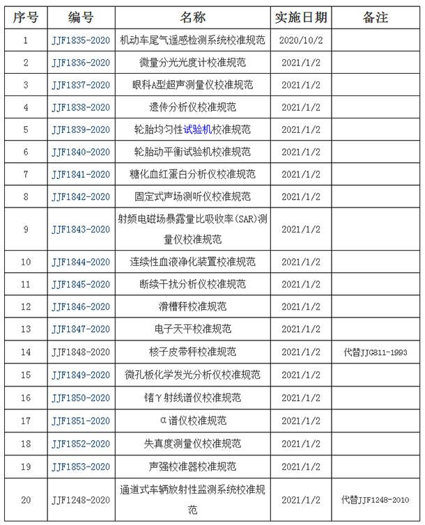 市場監(jiān)督總局發(fā)布20項計量技術(shù)規(guī)范