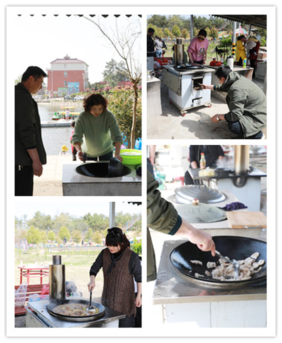所有食材和工具都是自備的,自己動手才能完美的體驗其中的樂趣呀!所有人都積極參與進來,分工明確,各盡其職。細膩的女同事們正在有條不紊地清洗著生菜、小龍蝦等食材;長廊下的鐵鍋,火被燒得旺旺的,手藝高超的同事們?yōu)榇蠹页尸F(xiàn)獨家秘方的原生態(tài)炒雞;燒炭、架爐子,烤串,有經(jīng)驗的男同事已經(jīng)開始進行烤串的預(yù)熱工作了。很快就做好了燒烤前的各項準備!