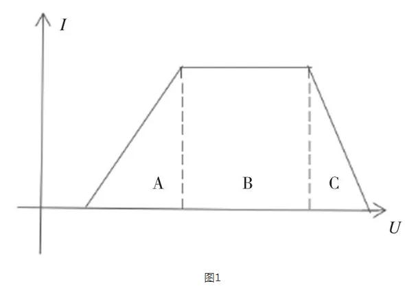 從大方向來考慮,交流充電樁與直流充電機的檢定有諸多相通之處,但充電樁在檢定和使用中都要注意恒功率區(qū)域問題。如圖1所示,A、C區(qū)域為低電流情況,充電效率低,容易炸機;B區(qū)域為恒功率區(qū)域,適合檢定。